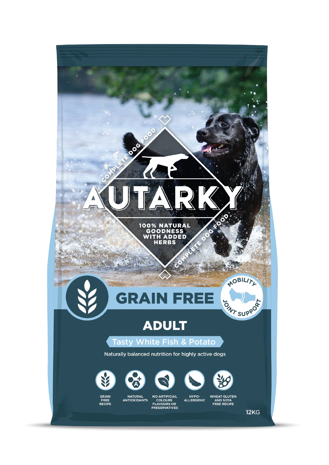 Autarky White Fish & Potato Dog Food has been designed to help keep dogs with a sensitive digestive system happy and healthy. Free from grain, wheat gluten and soya helping to reduce the risk of an upset stomach.