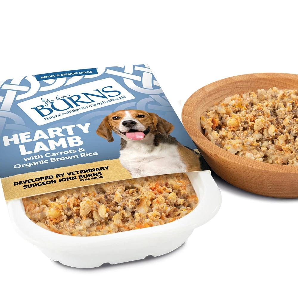 Supporting British and Irish farmers, Burns’ Hearty Lamb with Carrots and Organic Brown Rice is hand cooked in Wales and the perfect convenient alternative to home cooking. This wholesome wet dog food recipe contains natural ingredients and single-source protein, making it suitable for adult and senior dogs of any breed, fussy eaters and even the most sensitive dogs.Â
