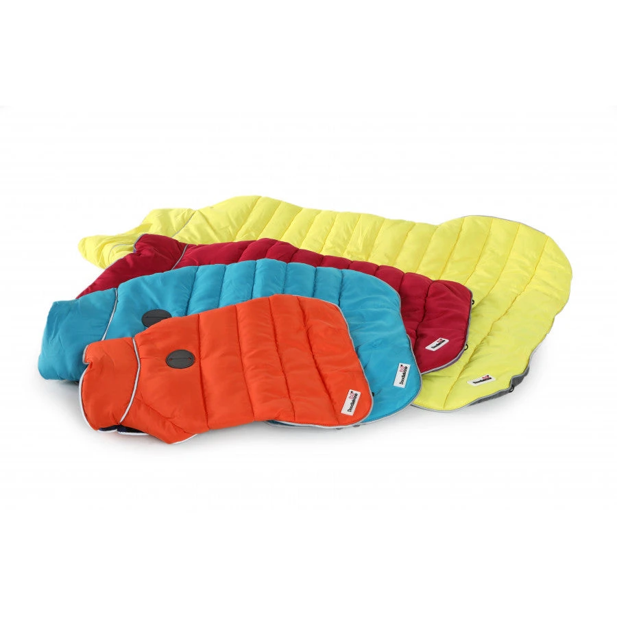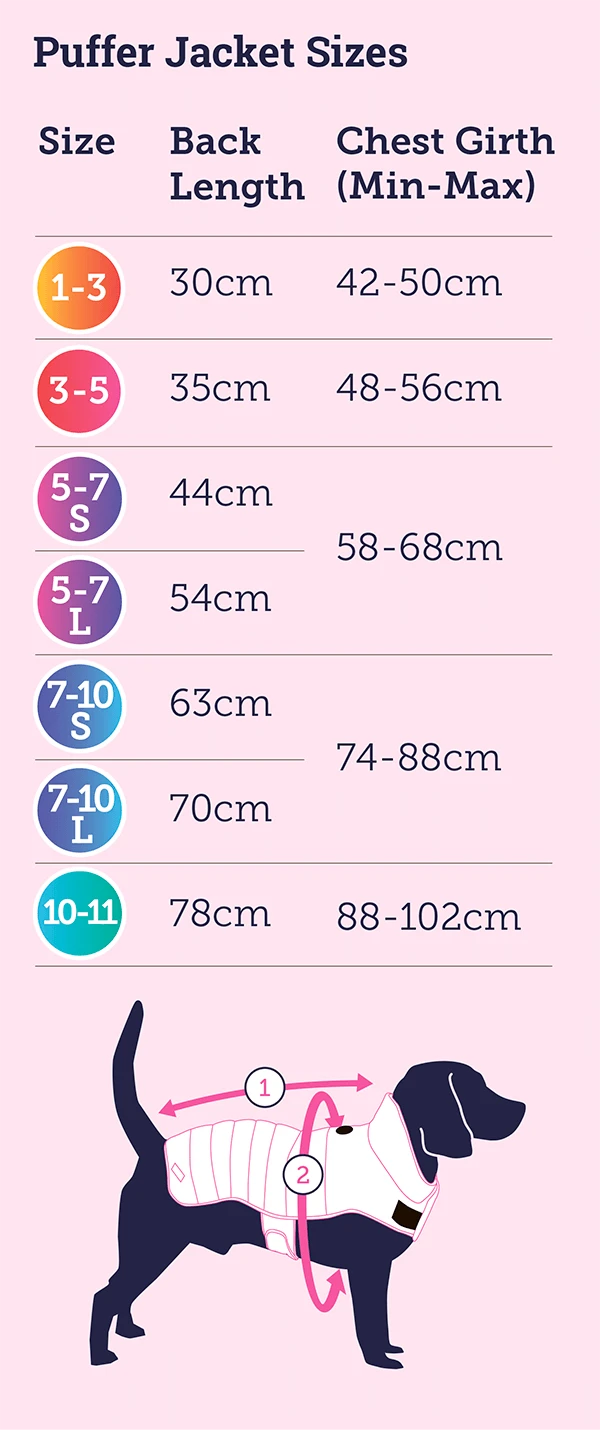 The doodlebone puffer jacket is an easy on/off fit with Velcro openings making it easily adjustable. The best part is its reversible, so you get two colours in one!