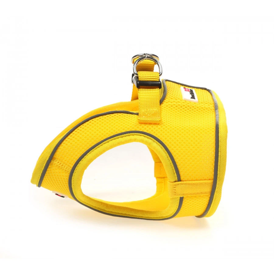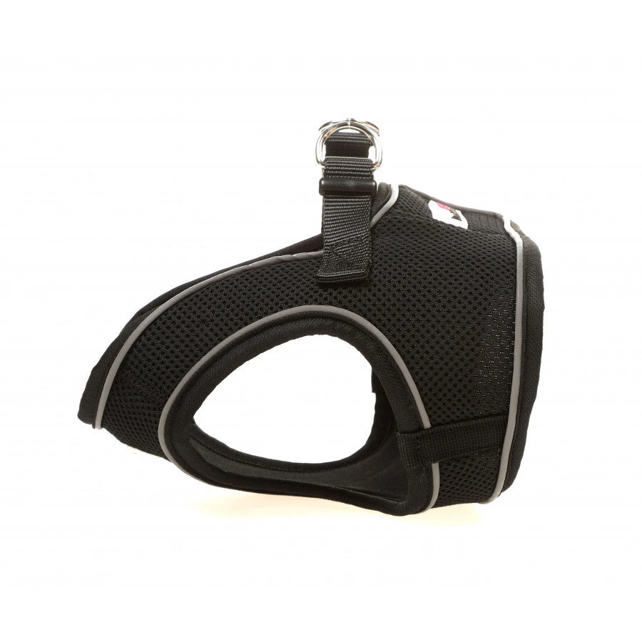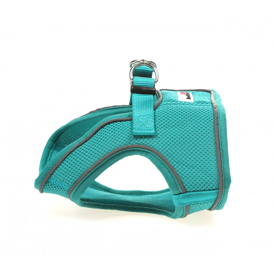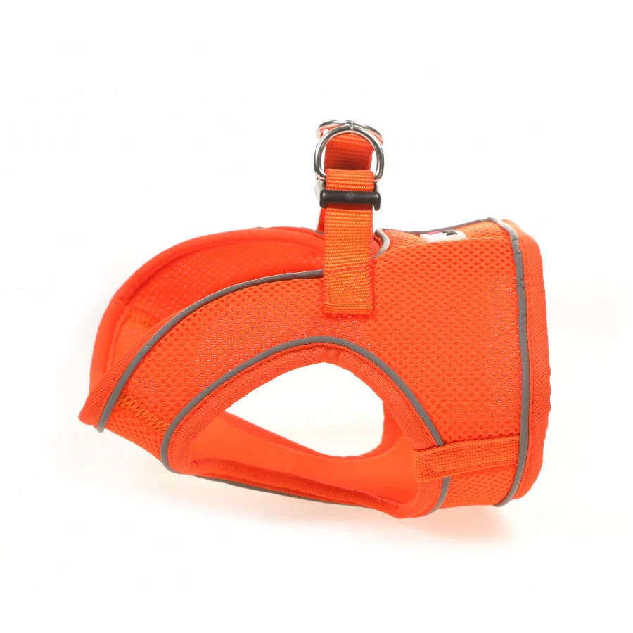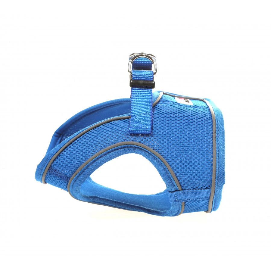 Step in harness for dogs who prefer not to have a harness passed over the head. Soft material and great chest coverage for a secure fit. Velcro and clip ensures the harness very secure. Reflective piping ensures top visibility for night time walk.Â