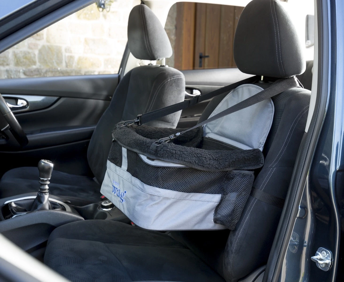 The Henry Wag Dog Booster Car Seat provides small pets with an elevated secure riding position to give them a view of the road and to keep them safe. It features a clip that can attach to a dogs harness to keep them in position. The Dog Booster Car Seat fixes around the head rest and around the back of the seat to ensure that your dog is kept secure.