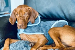 The advanced microfibre wicks water from the dog’s coat leaving them fresh and dry. The advanced microfibre wicks water from the dog’s coat leaving them fresh and dry. It uses the highest quality microfibre and is easy to put on with a simple strap to hold the coat in place