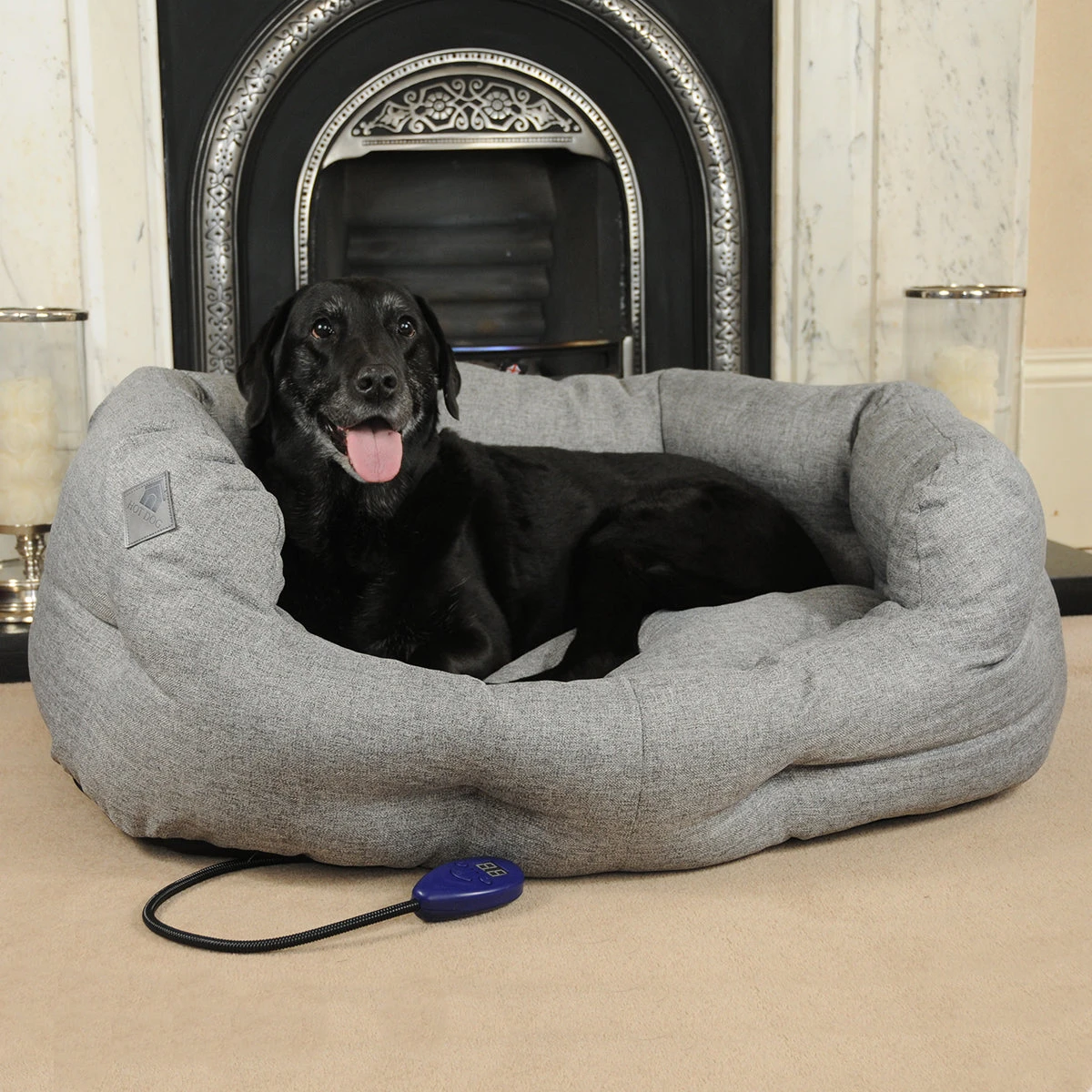 Hot Dog beds are made from premium fabrics and materials and the beds feature a pressure activated heat pad with 7 adjustable heat settings ranging from 25c to 55c offering the perfect amount of pet-pleasing warmth. The heat pad is mains powered and is tested to the highest safety standards. Any cables are armoured and made with chew resistant metal and plastic to prevent your dog chewing through the wiring.