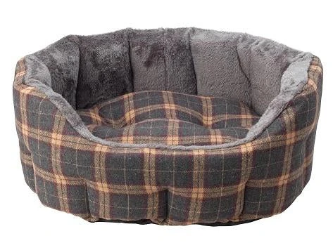 Grey tweed pet bed lined in soft plush. House of Paws loves this beautiful tweed fabric it’s soft and cosy. The bed features a water resistant non slip base.