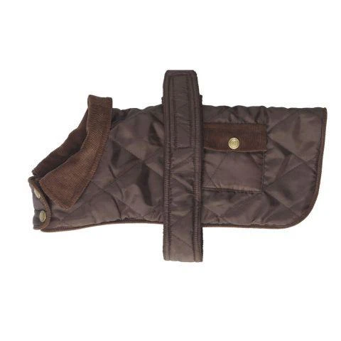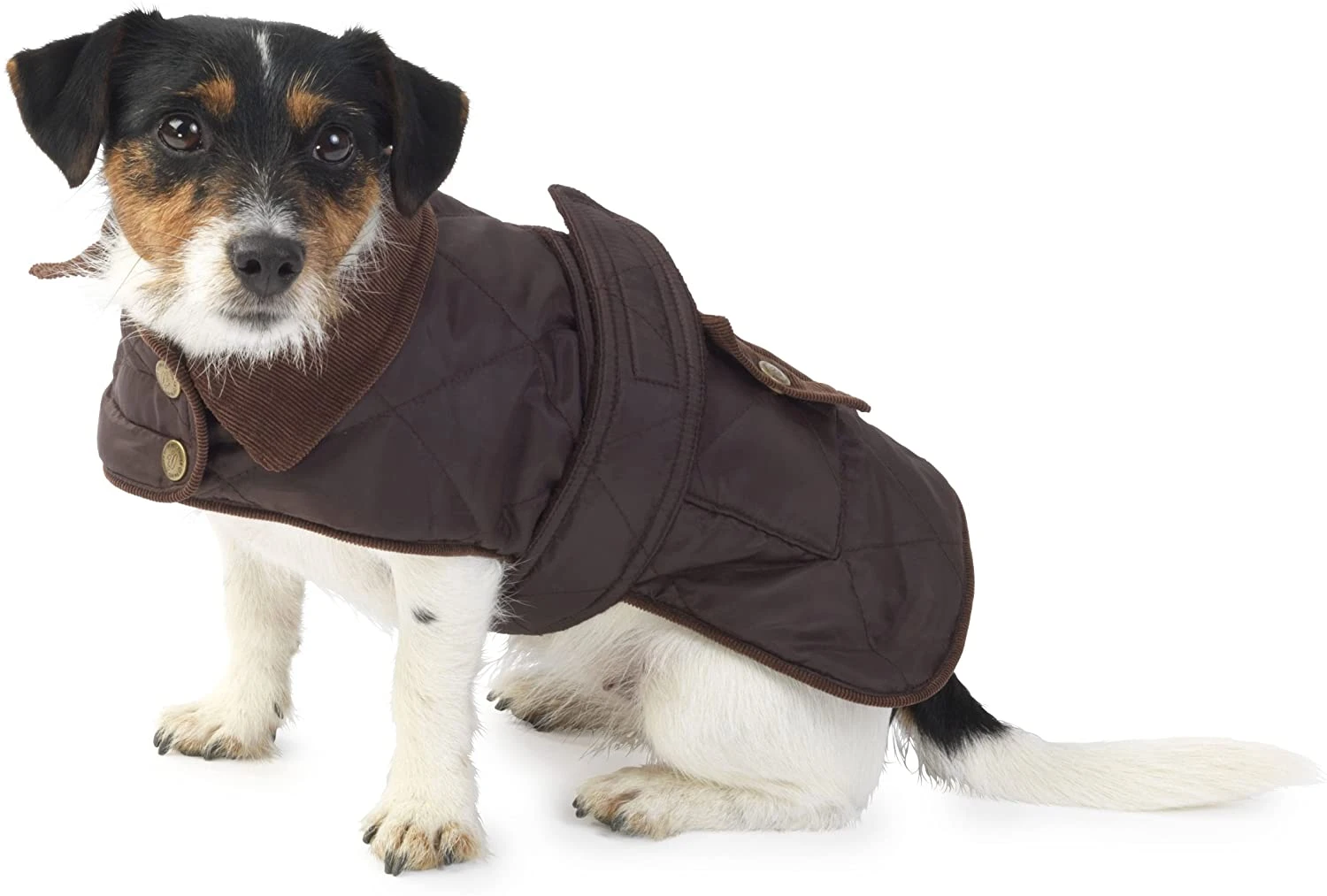 This House of Paws brown quilted waterproof coat for dogs had a cosy, warm navy fleece lining and is edged in brown cord. The coat is easy to fit using 2 velcro fastening straps and features 2 working pockets.