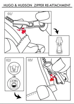 Please note, the zipper is removable to allow the coat to be machine washed, see re-attachment instructions in the images above.