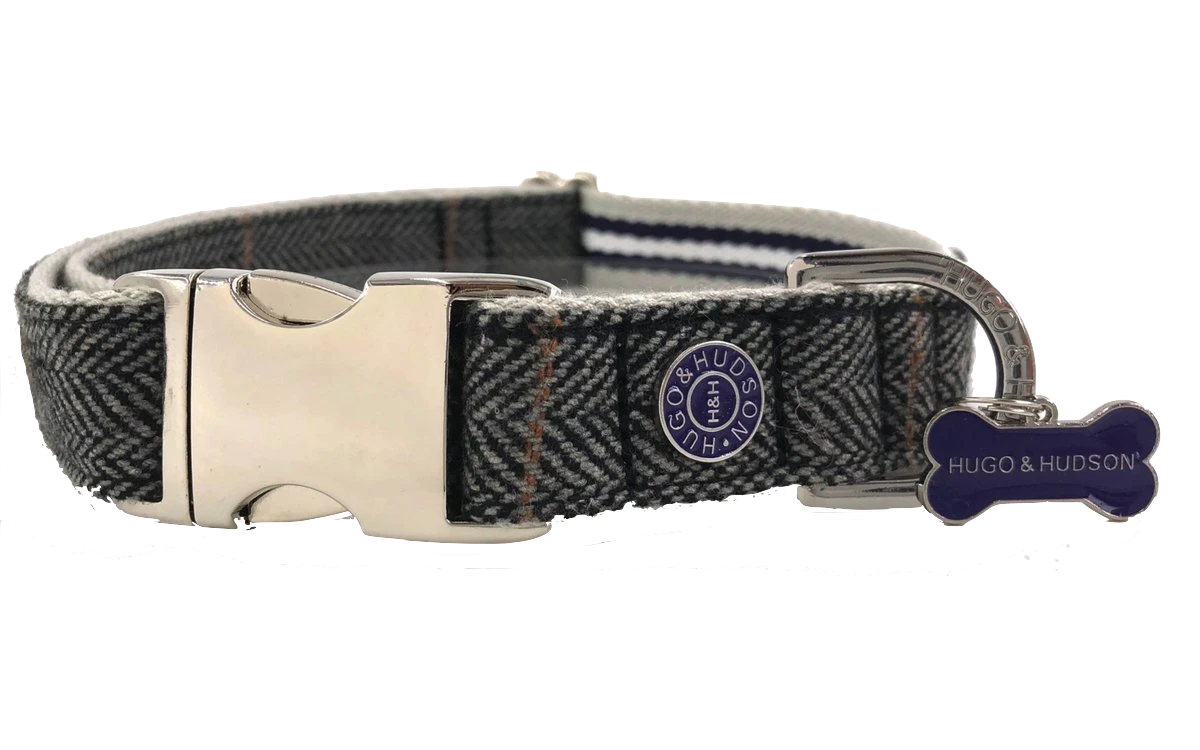 Hugo & Hudson – Grey Checked Herringbone Dog Collar