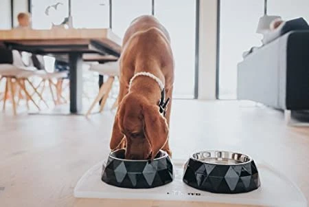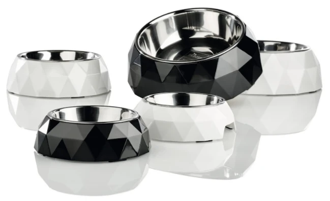The Kimberley geometric design dog feeding bowl is more than just elegant – it is also scratch and shock-resistant, and particularly easy to clean. The removable stainless steel inner bowl is also very practical. Rubber feet on the bottom of the bowl ensure that it stands firmly and prevent it from slipping when your dog gets overexcited while eating and drinking. The bowl can be simply wiped out or cleaned in the dishwasher.
