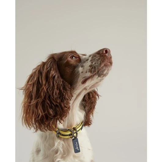 The Joules Coastal Dog Collar and the matching Joules Coastal Lead in Yellow Stripe are comfortable and durable. They have an adjustable buckle with Joules embellishments. A beautifully designed nylon collar with leather backing. Available in four sizes.