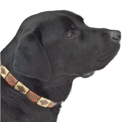 This colourful Pioneros Leather Polo Dog Collar is made using fine quality brown leather and has been embroidered by hand with a traditional Argentine pampa pattern.