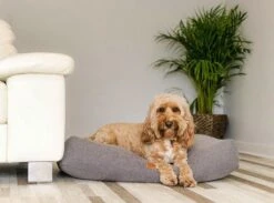 Designed using a high quality grey & black tight tweed fabric, with real Italian premium vegetable tanned leather labels and carry handles from Tuscan tanneries, the Henley nest bed is available in our arch design (scoop at the front) in four sizes – XS, S, M & L