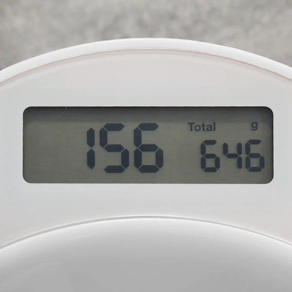 Digital scale displays current weight and memory weight in either grams or pounds. Capable of weighing up to 2,000 grams or 4.4 pounds.