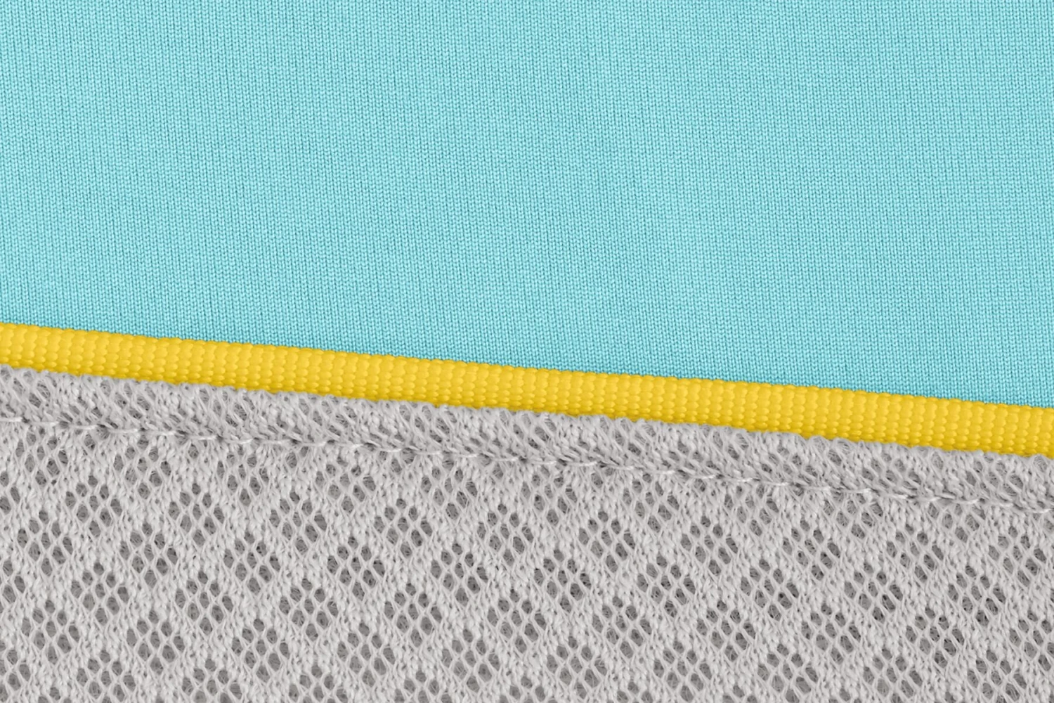 The Ruffwear Jet Stream efficiently cools dogs during light and fast, high-intensity adventures through shading and evaporative cooling. In warm climates, dogs typically stay cool by seeking shade in the heat of the day. The light and sleek Jet Stream uses shade-providing spandex over the back, while Ruffwear’s three-layer evaporative cooling chest panel disperses heat from the dog’s core. To activate the Jet Stream, soak in water, wring out, zip on your dog, and go.