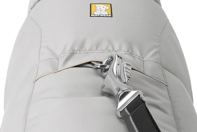 The Ruffwear Quinzeeâ„¢ is a packable insulated winter dog jacket. Recycled polyester insulation provides lofty warmth in brisk conditions, while side release buckles provide easy adjustment and on/off. The Quinzee stuffs into its integrated stuff sack for convenient storage on the go.