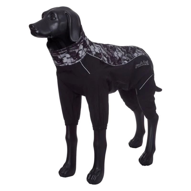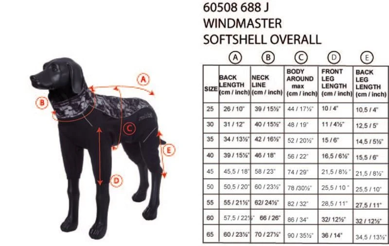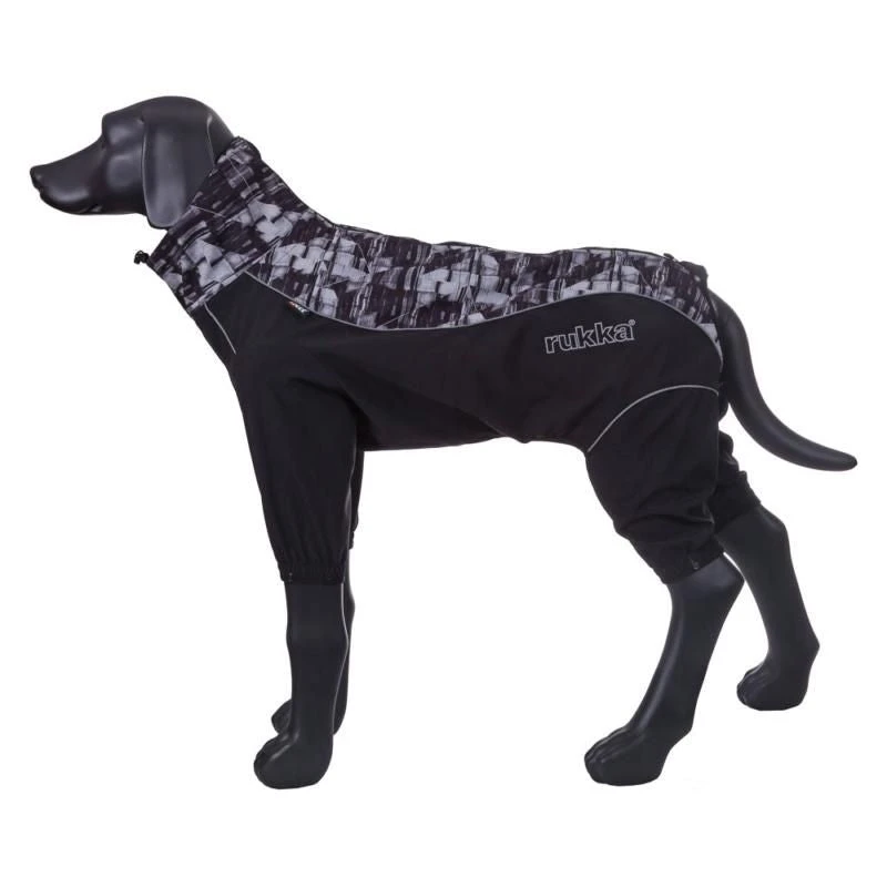 This versatile softshell overall dog coat with legs is made of weatherproof material with a warm fleece lining and is an excellent choice for cold windy days. The elastic material and excellent cut give extra comfort for walking and running. Thanks to the zip closure on the back, the overall is quick and easy to put on. There is a covered opening on the back for lead attachment. An adjustable waist and neckline add the final touch for the perfect fit and protection. Adjustable leg openings prevent water, wind or mud entering the overall through the leg end openings and keep your dog’s thighs warm.