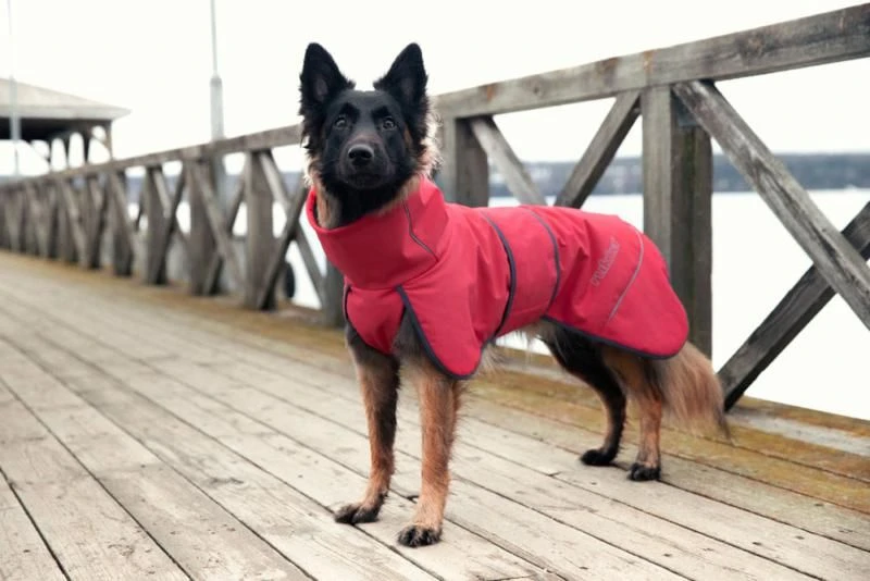 Windproof and water-resistant, the Windy has a warm, plush lining with a high, protective collar to keep out the elements. Fit is enhanced by an adjustable waist and collar. Features an opening for lead attachment, rear leg straps and reflective detailing.