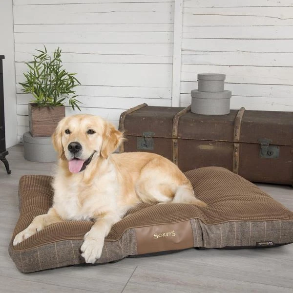 The Scruffs® Windsor collection is themed around two timeless colourways, in keeping with home decor trends. The beds are upholstered with a rich tweed outer sidewall, combined with contrasting chenille lining. A faux leather centre patch with embroidered Scruffs logo and faux leather piping complete the beds detailing. Each bed has a non-slip base.