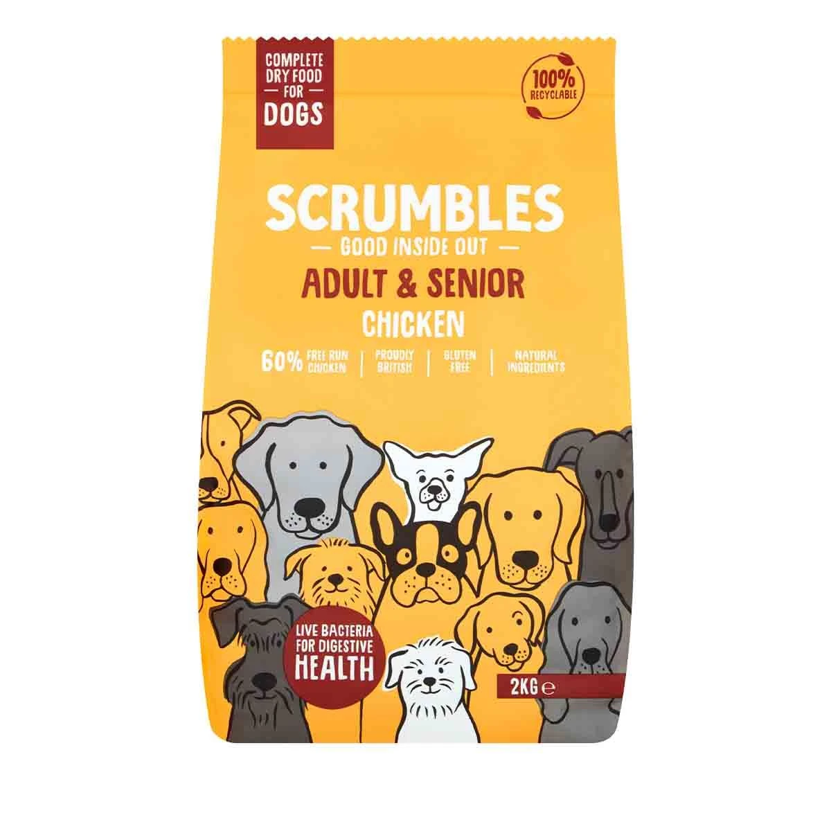 This Scrumbles complete dry dog food is made with 60% free run chicken, essential vitamins and minerals and added probiotics to support digestive health. It is made with natural ingredients, with no added sugars, salts nor any derivatives, fillers or artificial nonsense. This delicious hypoallergenic recipe is free from gluten, wheat and dairy. The bag is recyclable at large stores.