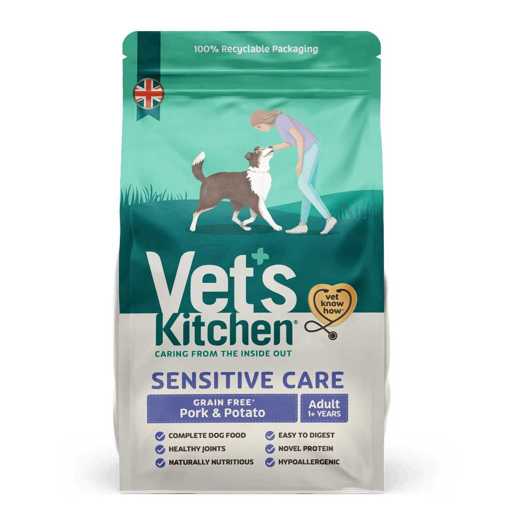 Vet’s Kitchen® Sensitive Care range is a complete dry dog food which provides perfectly balanced nutrition in a delicious tasting meal and is ideal for sensitive adult dog.Â