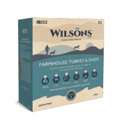 Available in 2kg or 10kg eco packs, Wilsons’ Farmhouse Turkey & Duck is a complete grain-free premium British dry dog food and is gently pressed with apple, ginger and cranberry in their Scottish factories.